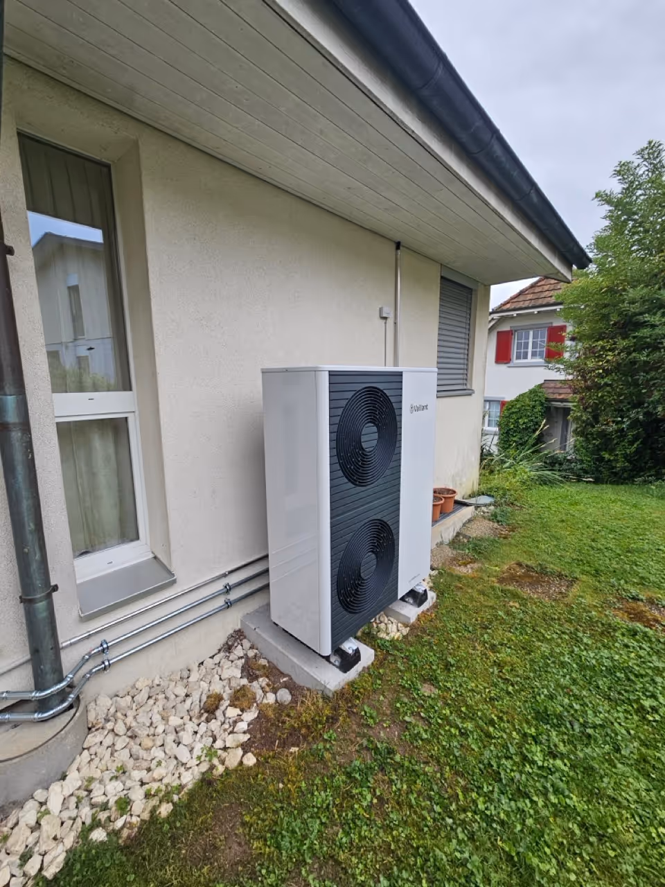 Im Rahmen einer umfassenden Sanierung in Muttenz haben wir die bestehende Ölheizung umweltgerecht demontiert und den Öltank fachgerecht entsorgt. Im Zuge der Modernisierung wurde eine hocheffiziente Wärmepumpe des Typs Vaillant ArothermPlus 105/6 S2 installiert. Diese Wärmepumpe ist für die Außenaufstellung konzipiert und sorgt für eine energieeffiziente Beheizung des Gebäudes.